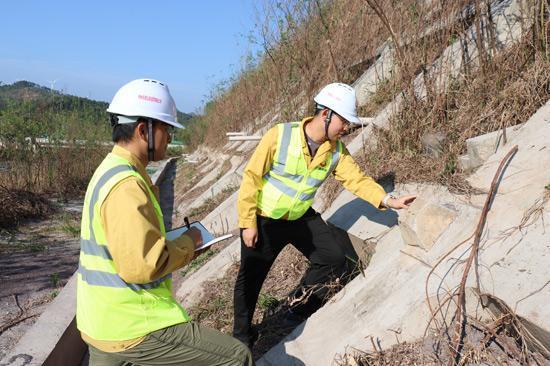 “匠心养路先锋”检查边坡情况。翁雅梅摄